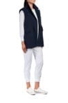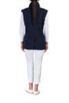 Kamizelka z kołnierzem, podkreślonymi ramionami, dwiema ozdobnymi patkami i jedną kieszenią.